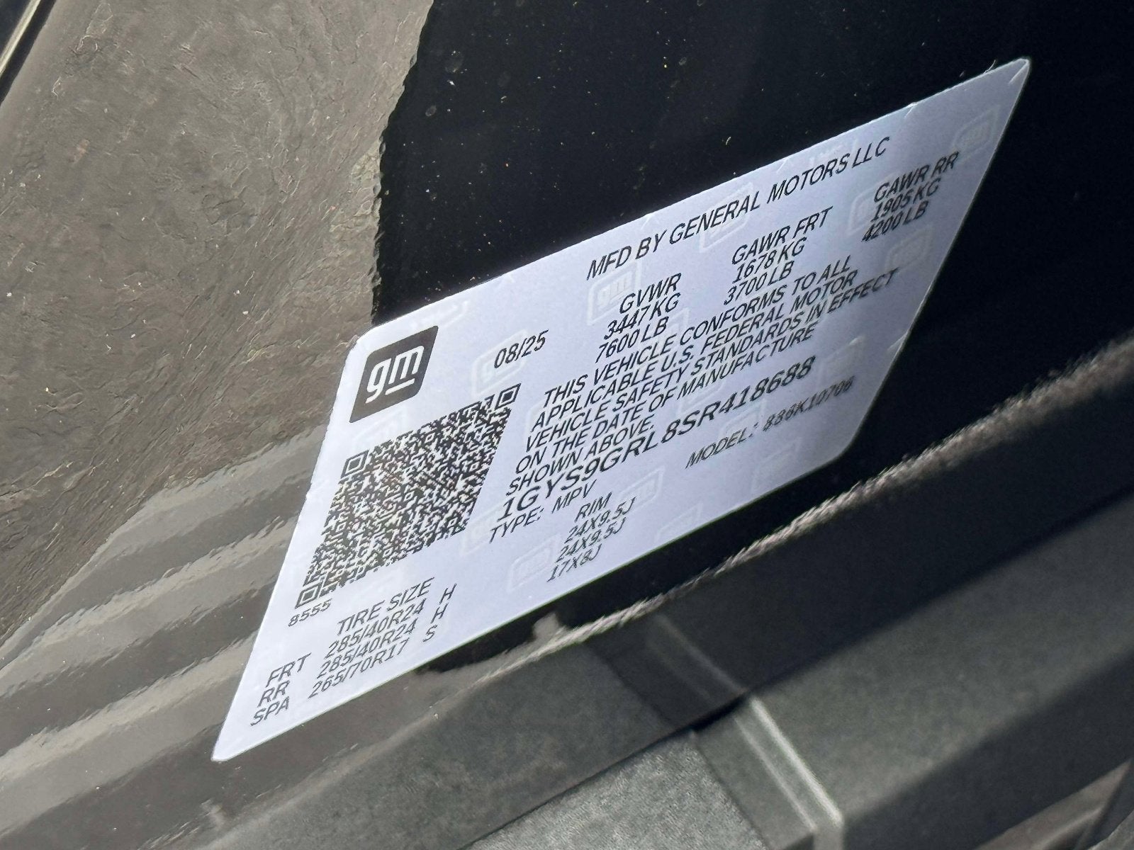 2025 Cadillac Escalade Sport Platinum CHECK OUT ALL THESE GREAT OPTIONS 3rd Row All-Weather Floor Liner Package, Interior Protection Package (1st 2nd and 3rd Row All-Weather Floor Mats and Integrated Cargo Liner), Preferred Equipment Group 1SH (2-Speed Active Transfer Case, AKG Studio Reference 36-Speaker Audio System, Blind Zone Steering Assist with Trailering, Door Lock and Latch Shields, Electronic Limited-Slip Differential, Floor Console with Covered Storage, Front Auxiliary 12-Volt Power Outlet, Glass Breakage Sensor, Heated and Ventilated Driver and Front Passenger Seats, Hitch Guidance with Hitch View, Illuminating Front and Rear Sill Plates, Integrated Trailer Brake Controller, Magnetic Ride Control Suspension, Next Generation Active Noise Cancellation, Night Vision, Platinum Interior Trim, Power Lumbar Massage Driver Seat, Power Lumbar Massage Front Passenger Seat, Power Panoramic Tilt-Sliding Sunroof, Power-Retractable Assist Steps, Rear Seat Entertainment System, Reconfigurable Full-Color Head-Up Display, Smart Trailer Integration Indicator, Theft-Deterrent Alarm System, Trailering App, Trailering Assist Guidelines, Vehicle Inclination Sensor, Vehicle Interior Movement Sensor, Wheel Locks, and Wheels: 22 18-Spoke Alloy), Touring Package (Air Ride Adaptive Suspension, Power Open/Close Doors, and Soft Closing Front and Rear Doors), 2-Presets Memory For Driver Seat Adjuster, 3 Years SiriusXM, 3.23 Axle Ratio, 3rd row seats: split-bench, 4-Way Power Driver Lumbar Seat Adjuster, 4-Way Power Front Passenger Lumbar Seat Adjuster, 4-Wheel Disc Brakes, 8-Way Power Driver Seat Adjuster, 8-Way Power Front Passenger Seat Adjuster, ABS brakes, Adaptive suspension, Air Conditioning, Alloy wheels, AM/FM radio: SiriusXM with 360L, Apple CarPlay/Android Auto, Audio memory, Auto High-beam Headlights, Auto tilt-away steering wheel, Auto-dimming door mirrors, Auto-dimming Rear-View mirror, Automatic temperature control, Brake assist, Bumpers: body-color, Compass, Delay-off headlights, Driver door bin, Driver Seat Power Bolster, Driver vanity mirror, Dual front impact airbags, Dual front side impact airbags, Electronic Stability Control, Emergency communication system: OnStar Services capable, Exterior Parking Camera Rear, Four wheel independent suspension, Front anti-roll bar, Front Bucket Seats, Front Center Armrest w/Storage, Front dual zone A/C, Front License Plate Bracket, Front Passenger Seat Power Bolster, Front reading lights, Full Semi-Aniline Leather Seats with Mini-Chevron, Fully automatic headlights, Garage door transmitter, Genuine wood console insert, Genuine wood dashboard insert, Genuine wood door panel insert, Headphones, Heads-Up Display, Heated door mirrors, Heated Driver and Front Passenger Seats, Heated front seats, Heated rear seats, Heated steering wheel, Illuminated entry, Knee airbag, Lane Departure Warning System, Leather steering wheel, Low tire pressure warning, Memory seat, Navigation System, Night vision lights, Occupant sensing airbag, Outside temperature display, Overhead airbag, Overhead console, Panic alarm, Passenger door bin, Passenger vanity mirror, Power door mirrors, Power driver seat, Power Liftgate, Power moonroof, Power passenger seat, Power steering, Power windows, Radio data system, Radio: Infotainment Experience, Rain sensing wipers, Rear air conditioning, Rear anti-roll bar, Rear audio controls, Rear reading lights, Rear window defroster, Rear window wiper, Remote keyless entry, Security system, SiriusXM with 360L Trial Subscription, Speed control, Split folding rear seat, Spoiler, Steering wheel memory, Steering wheel mounted audio controls, Tachometer, Telescoping steering wheel, Tilt steering wheel, Traction control, Trip computer, Turn signal indicator mirrors, Variably intermittent wipers, Ventilated front seats, Voltmeter, Wheels: 24 7-Spoke Alloy, and Wireless Apple CarPlay/Wireless Android Auto.
